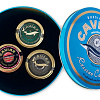 икра ""Севрюжка ""Классик"" 57 г, икра русско-сибирского осетра ""Роял"" 57 г и паюсная икра стерляди ""Астраханка"", 60 г.