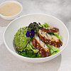 Состав: угорь жаренный в соусе унаги, авокадо, огурец, чука, салат ромейн, соус терияки, соус ореховый, кунжут, микрозелень