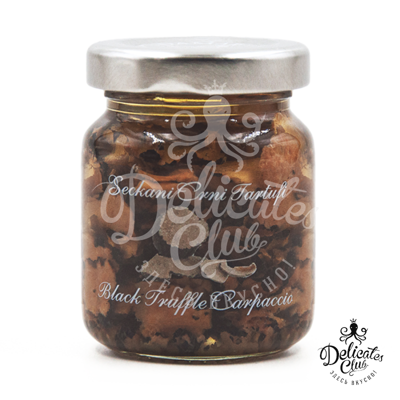 Тонкие ломтики черных трюфелей в пропитанном ароматом драгоценных грибов оливковом масле, станут украшением праздничного стола и желанным подарком для любого гурмана.