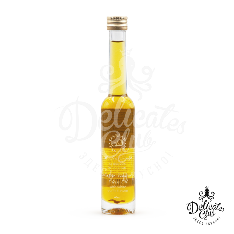 Оливковое масло первого холодного отжима с белым трюфелем - драгоценная оправа для классических и креативных блюд. Белый трюфель – самый дорогой гриб в мире, который уже сто лет вызывает восхищение гурманов и украшает меню лучших ресторанов. Обладает интенсивным и сложным ароматом с нюансами сыра и чеснока. Отлично сочетается с пастой, мясом, птицей и овощами.