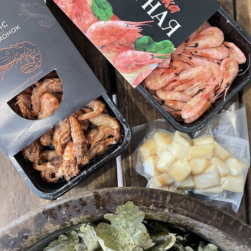 В наборе «Баня» мы собрали три уже готовых деликатеса для двоих банщиков. Креветки стоит только разморозить, а кальмар можно есть сразу.